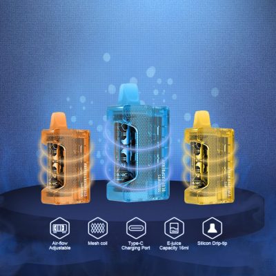 ظرفیت : 16 میلی لیتر جوس نیکوتین : 20 میلی گرم کویل : مش باتری : داخلی 550 میلی آمپری قابلیت شارژ با TYPE-Cپاد یکبار مصرف :