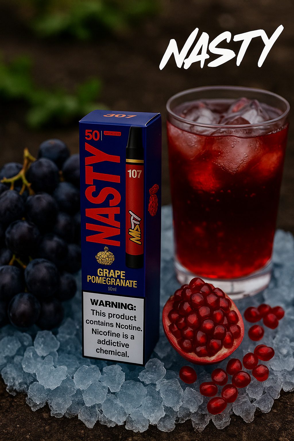 اگر به دنبال یک سالت نیکوتین میوهای، خنک و خاص هستی، نستی انگور و انار (Nasty Grape Pomegranate) انتخاب بینقصیه.