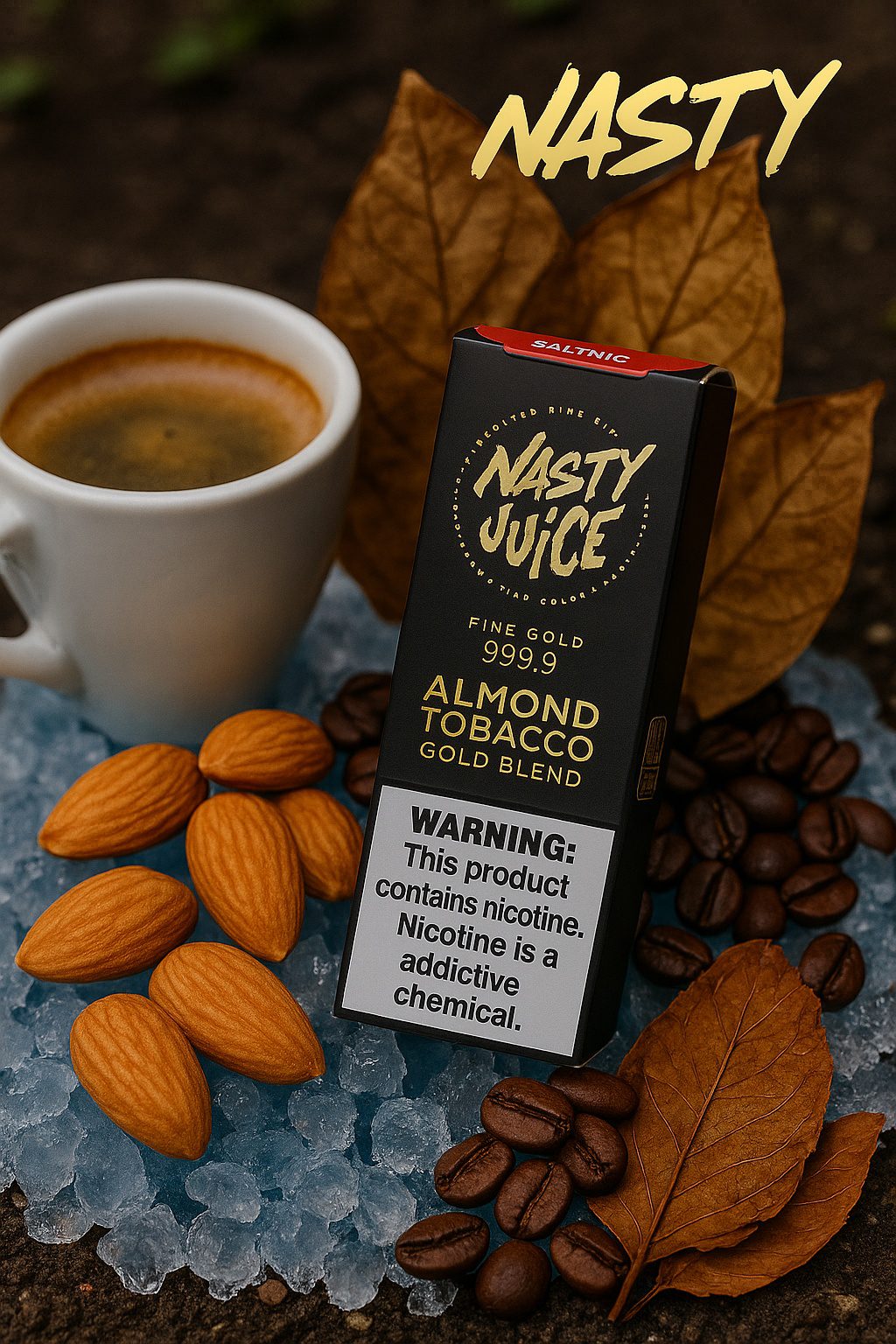 برند مطرح نستی جویس (Nasty Juice) با تولید سالت نیکوتینهای خاص و باکیفیت، همیشه در بین ویپرها محبوبیت بالایی داشته است. یکی از محصولات خاص و جذاب این برند، سالت نیکوتین نستی آلموند توباکو (Nasty Almond Tobacco) از سری Gold Blend است که ترکیبی گرم و کلاسیک از تنباکوی اصیل با طعم ملایم بادام برشته را ارائه میدهد.